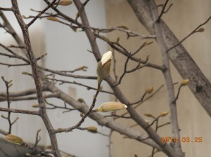 事務所の前の「ハクモクレン」が開花しました。(3/25)