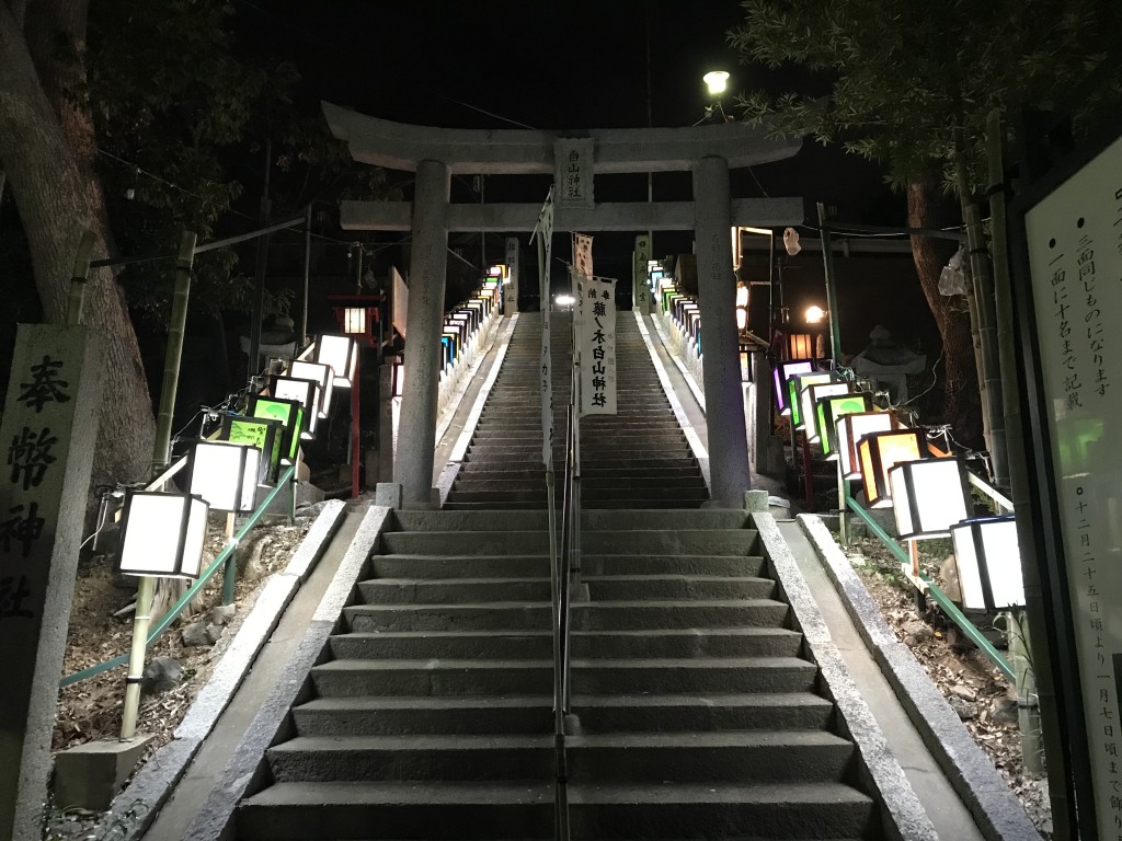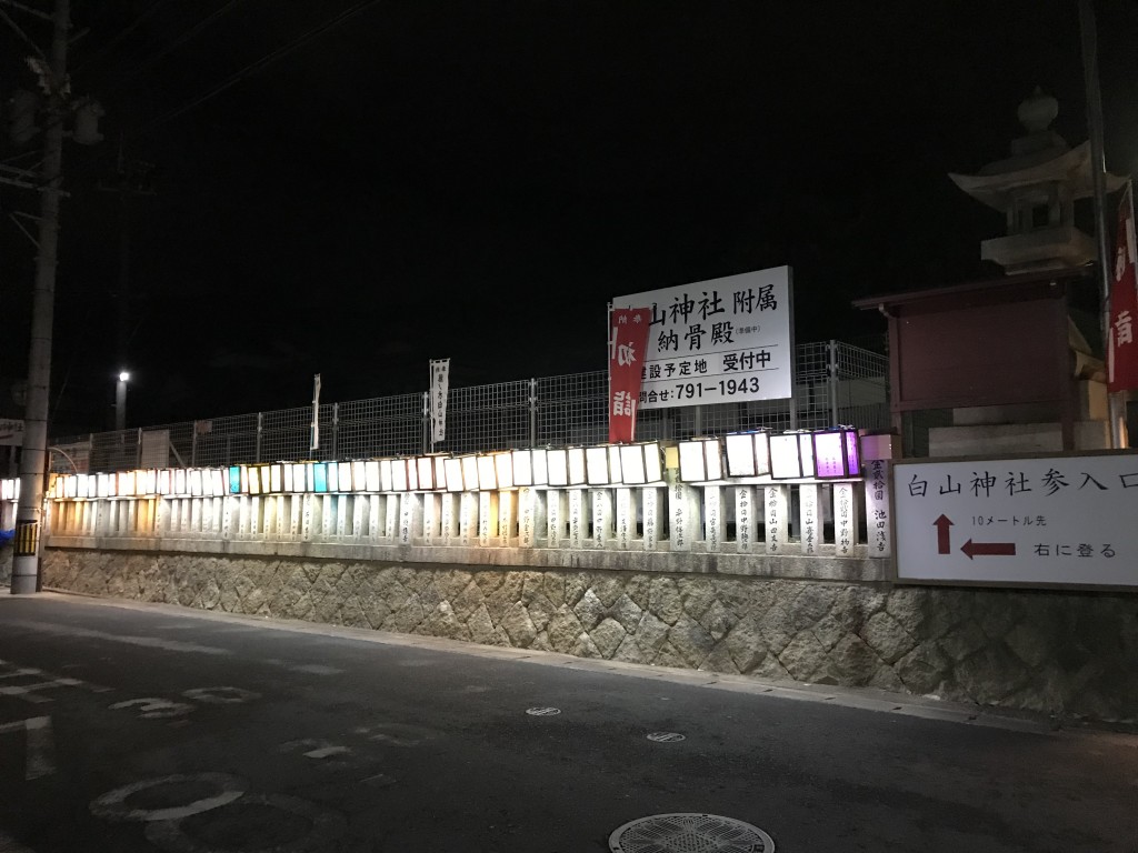 近くのお客様にお伺いした折に沢山の灯籠に目を惹かれました。手作り感があり温かみを感じ、日暮れになってこれに灯ったどんなにか素晴らしいだろうと思いました。夕食後に再度出かけてお参りをした次第です。