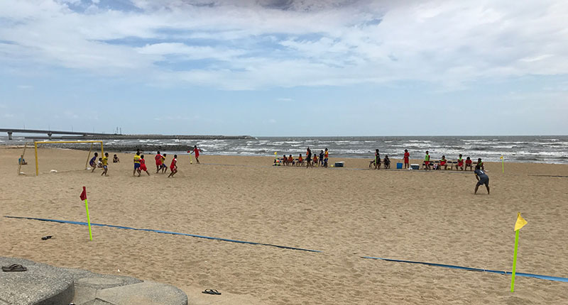 行橋市の長井浜海水浴場で「九州ビーチサッカー大会2017」が開催されていました。台風の影響で風が強かったのですが迫力あるプレーの連続でした。
