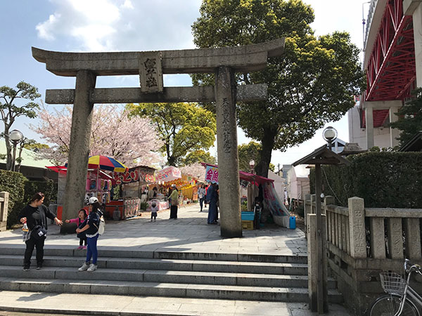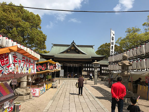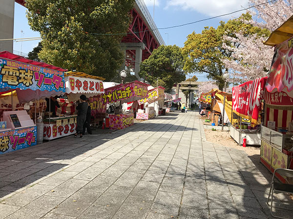 400年の歴史がある若松恵比須神社の春季大祭が4月2日から4日まで開催されます。今年の露店は神社境内で開いております。最近の好天のおかげで桜も満開で残っています。
