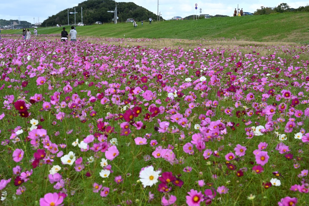 車で堤防を走っていたら綺麗なコスモスが咲いていました。依然来たときはもっと多かったような記憶もありますが、秋らしい風景でした。